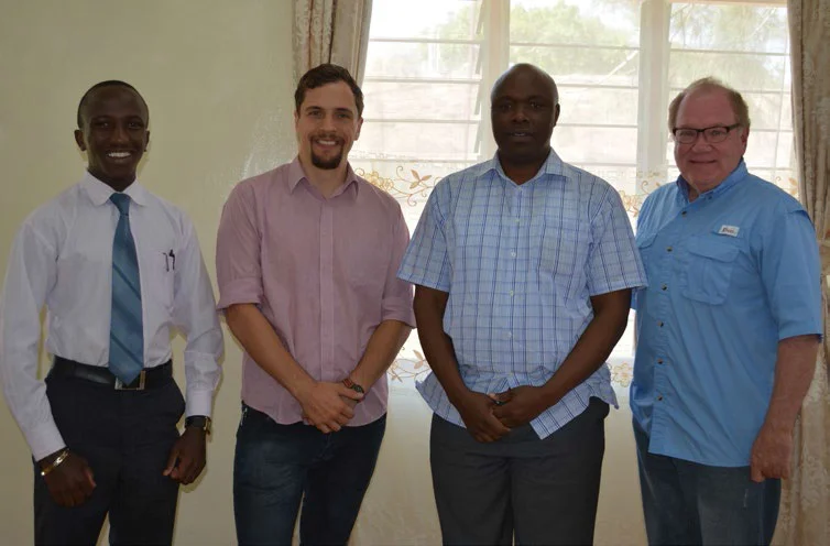 Gideon Hamman, a Daystar business student, proudly stands with the dean of Daystar’s School of Business and Economics, Mr. Evans Amata; Eric Rosell, Agora team leader; and Ray Barreth, CEO of Agora Enterprises during the Venture Village program forum held at Daystar University.